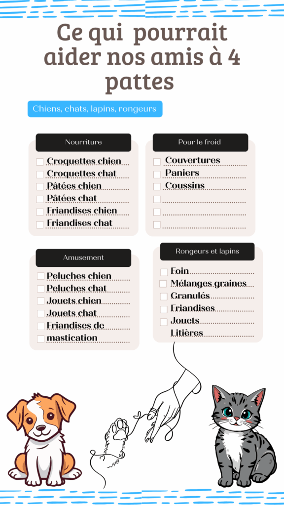 On a fait tout ensemble une liste des animaleries où on pourrait faire notre collecte et l’association a qui on pourrait donner nos dons. Notre critère pour trouver une association est d’en choisir une avec peu visibilité pour l’aider.