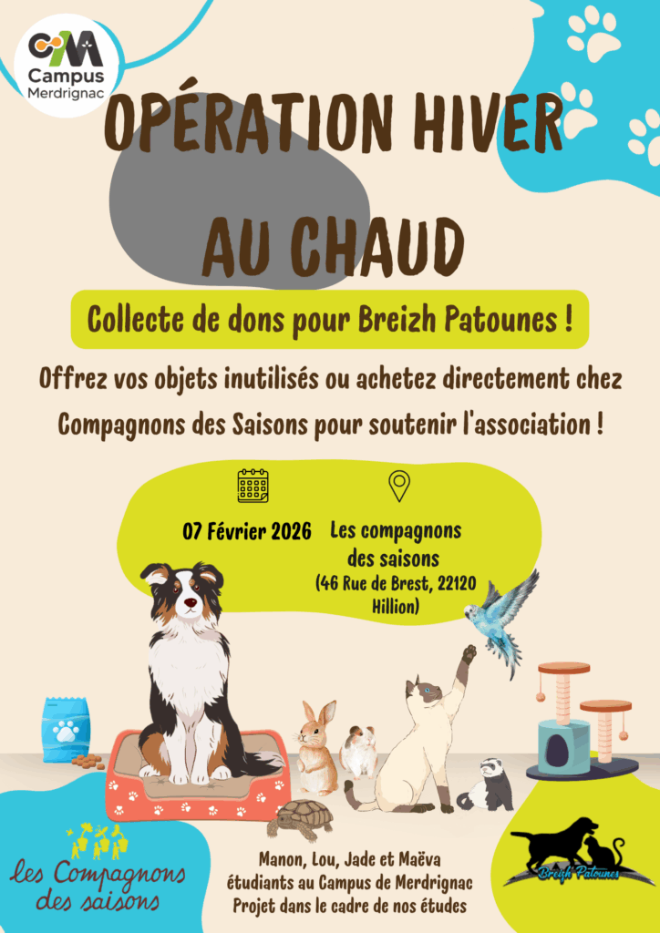 Maeva a pensé à le faire son lieu de stage : Compagnons des saisons à Hillion car ils ont déjà fait des collectes de dons donc on leur a demandé et ils ont d’accord mais ils travaillent qu’avec une association « Breizh Patoune«